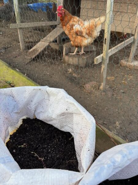 Got my potatoes in yesterday. They need a little more soil. That’s on the to-do list for today. I’m using an empty poultry feed back to grow them in. I used a bag last year for sweet potatoes. It worked beautifully.