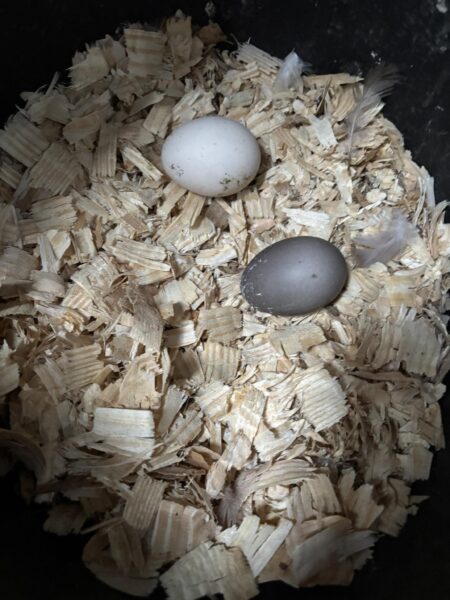 Since my girls have never laid dark eggs before, I suspect this is from one of the backyard neighbor ducks we took in last fall. Don’t fret. The egg is perfectly good.